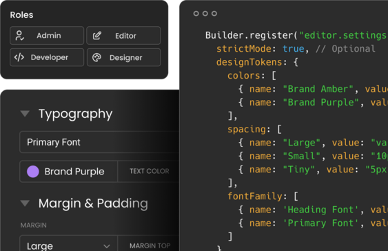 role-based permissions, integration with your design tokens, and the option for a "components-only mode" to globally ensure that all visual editor users use only the components you provide.