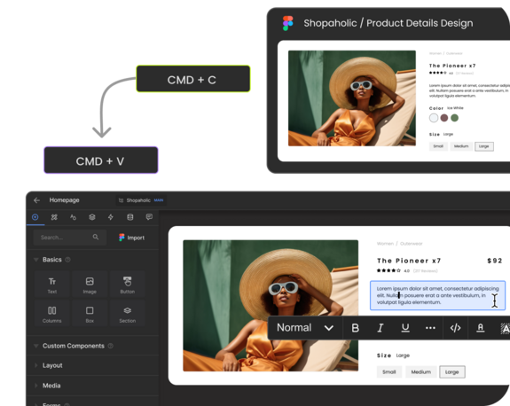 Eliminate tickets for basic changes by enabling anyone to create complex, responsive web and mobile experiences without coding. Content editors, designers, and marketers can copy and paste from Figma, add animations, and adjust for different screen sizes.