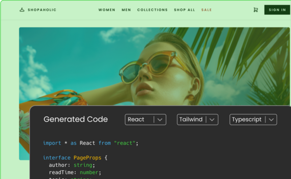 Turn anything you create in the Visual Editor into clean, reusable code in your framework.